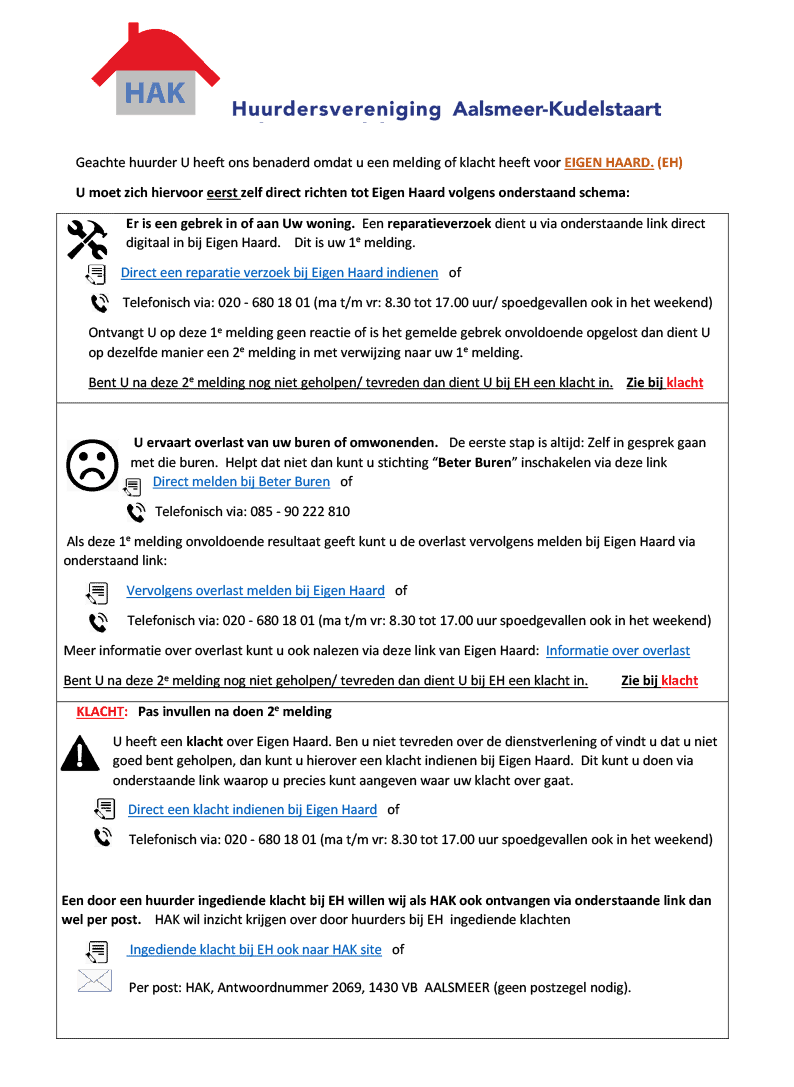 Klachtenformulier Huurdersvereniging Aalsmeer-Kudelstaart